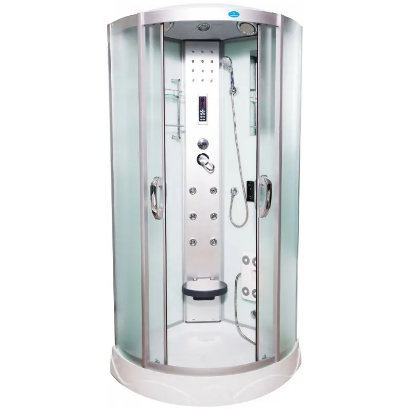 Душевая кабина ВМ-8315 100Б Водный мир 100х100 — идеальное решение для создания комфортного и роскошного водного пространства в вашей ванной. Эта превосходная модель сочетает в себе стильный дизайн и превосходные функциональные возможности. Основными особенностями этой душевой кабины являются хромированный профиль и матовое стекло, которые придают ей элегантный и современный вид. Более того, она оборудована низким поддоном, что делает ее использование удобным и безопасным. Превосходное качество и надежность этой модели обеспечиваются усиленным стальным каркасом и регулируемыми ножками. Кроме того, кабина оснащена латунным сливом с гидрозатвором, который предотвращает протекание воды. Благодаря серебристому алюминиевому профилю и закаленному травмобезопасному стеклу, эта душевая кабина обладает высокой прочностью и надежностью. Встроенный электронный пульт управления позволяет легко и удобно контролировать освещение, вентиляцию и FM-радио внутри кабины. Дополнительная декоративная светодиодная подсветка создает атмосферу релаксации и комфорта. Эта модель также оснащена высококачественным латунным смесителем с керамическим картриджем, который обеспечивает плавное и надежное регулирование температуры воды. В душевой кабине ВМ-8315 100Б Водный мир 100х100 установлен верхний тропический душ D250мм, ручная лейка и 6 гидромассажных форсунок, которые позволят вам насладиться расслабляющими процедурами гидромассажа. Также в кабине имеется ножной массажер для дополнительного удовольствия. Одна из важных особенностей этой душевой кабины — возможность установки парогенератора, что позволит вам наслаждаться целебными процедурами парового лечения. Душевая кабина ВМ-8315 100Б Водный мир 100х100 также оснащена полкой для косметических принадлежностей, дозаторами для жидкого мыла, зеркалом, выполненным из влагостойкого материала, и откидным сиденьем для удобства использования. Помимо всех этих преимуществ, передние боковые стекла данной душевой кабины имеют радиусную форму и закрыты профилями. Это придает ей завершенный и элегантный вид. Душевая кабина ВМ-8315 100Б Водный мир 100х100 — идеальное решение для создания роскошного и комфортного водного пространства в вашей ванной. Покупая эту модель, вы получаете современный дизайн, надежность и функциональность, которые превратят вашу ванную комнату в уютное место отдыха и релаксации. Покупайте качественную и надежную душевую кабину ВМ-8315 100Б Водный мир 100х100 на sanural.ru и наслаждайтесь комфортом и удовольствием каждый день!