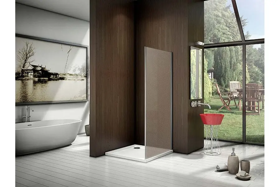 Душевая перегородка Bas Latte обладает размером 90х185 см. Конструкция состоит из одной неподвижных секций, создавая пространство со свободным входом. Устанавливается в облицованный кафелем угол ванной комнаты на поддон или непосредственно на пол со встроенным душевым каналом или трапом.