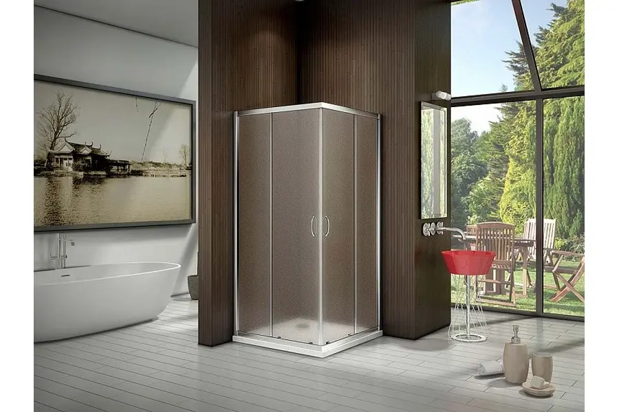 Душевой уголок Bas Latte обладает размером 100х53х185 см. Конструкция состоит из четырех секций: трех раздвижных и одной неподвижной. Устанавливается в облицованный кафелем угол ванной комнаты на поддон или непосредственно на пол со встроенным душевым каналом или трапом.