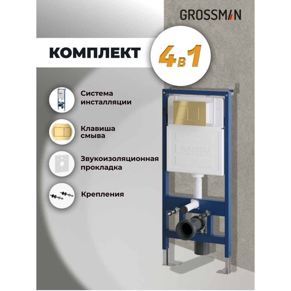 Инсталляция Grossman для скрытого монтажа унитаза + клавиша смыва Classic Золото глянцевый 97.04.30M