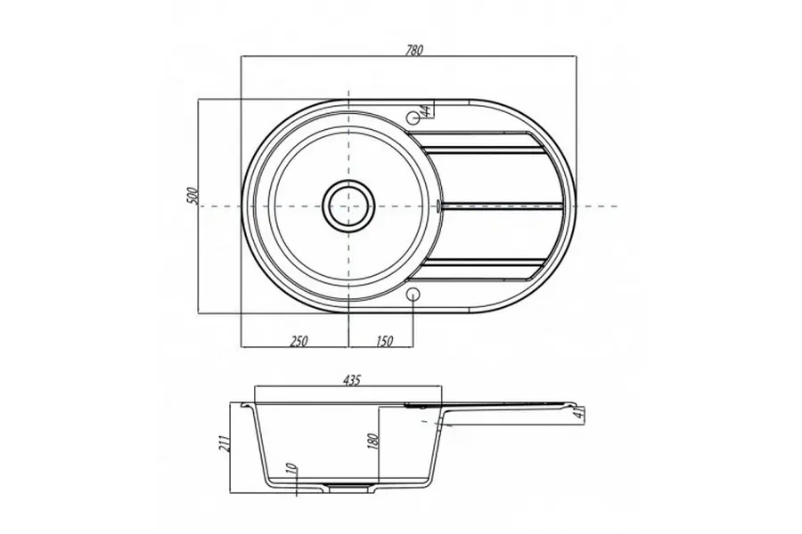 | Отверстие для смесителя | Нет |