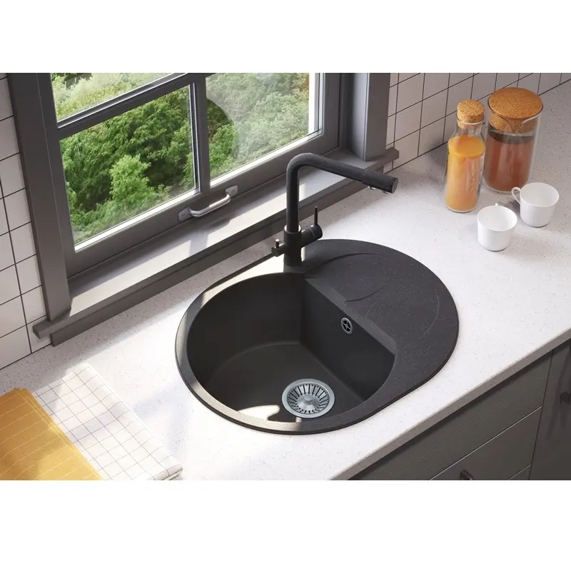 Мойка кухонная Polygran Atol имеет размеры 62х50 см., ширина чаши: 43 см. Овальная форма. Цена указана за мойку со сливом-переливом.