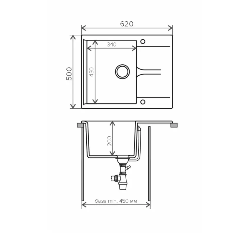 Мойка кухонная Polygran Gals имеет размеры 62х50 см., ширина чаши: 34 см. Прямоугольная форма. Цена указана за мойку со сливом-переливом.