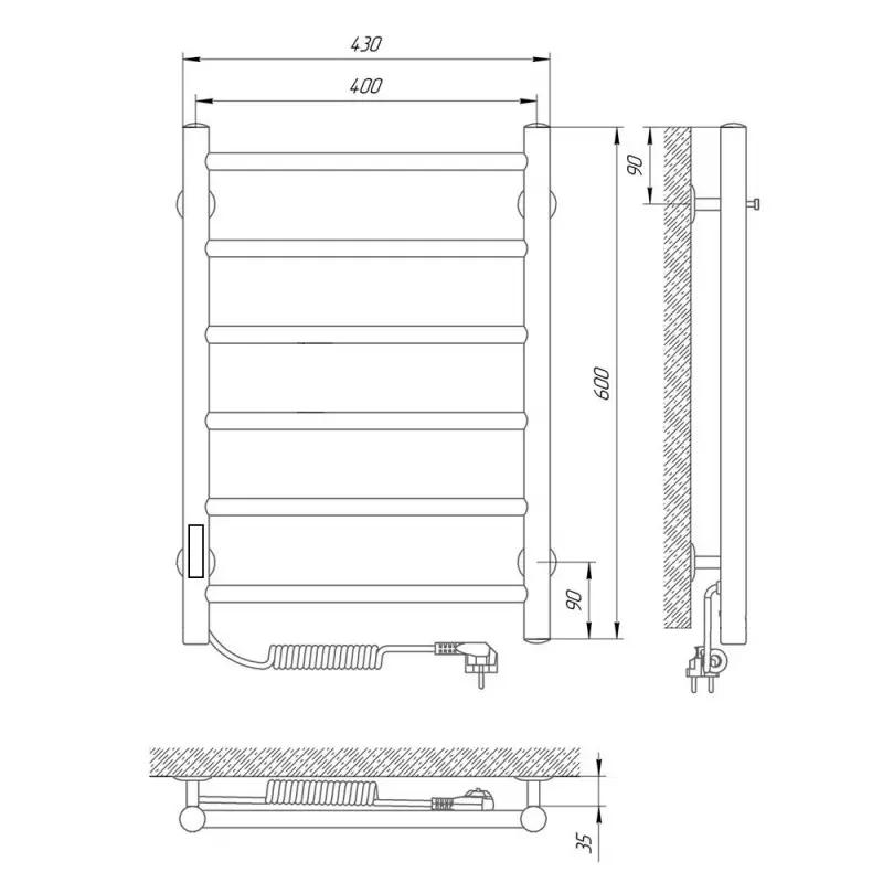Полотенцесушитель электрический Laris Джаз с высотой 60 см., используется для обогрева и сушки помещения. Нижнее подключение. Изготовлен из нержавеющей стали.