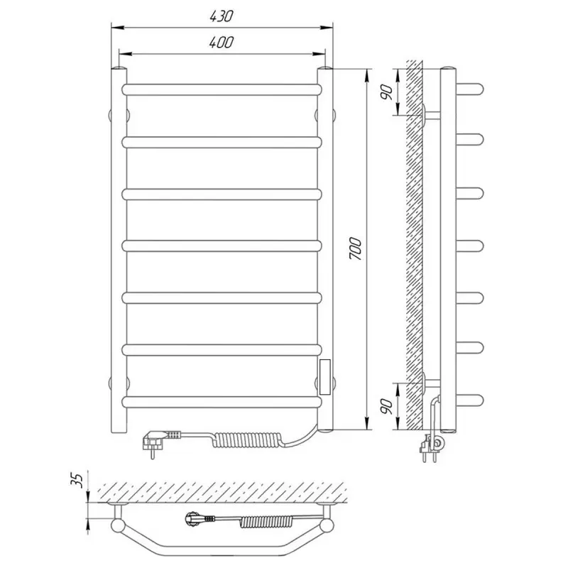 Полотенцесушитель электрический Laris Виктория П7 70х40 правый Хром глянцевый 73207639