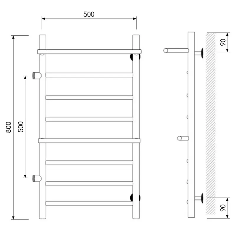 Полотенцесушитель водяной Laris Лавина П9 80х50 левый Черный матовый 73208028ЧМ