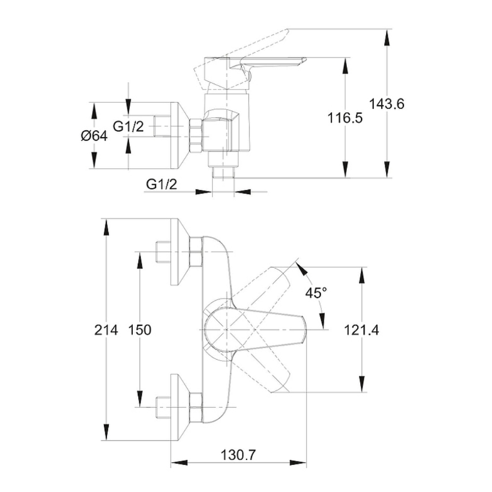 Смеситель для душа Cersanit Vero без излива. Изготовлен из качественных материалов и имеет защитное покрытие, что способствует устойчивости к коррозии и резким перепадам температуры. Управление рычажное, настенный монтаж на два отверстия.