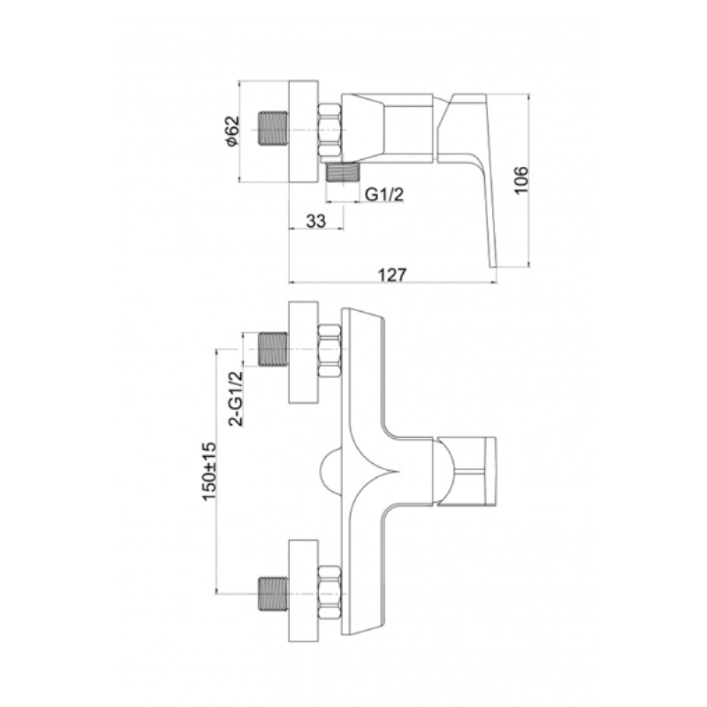 Смеситель для душа Cersanit Wisla без излива. Изготовлен из качественных материалов и имеет защитное покрытие, что способствует устойчивости к коррозии и резким перепадам температуры. Управление рычажное, настенный монтаж на два отверстия.